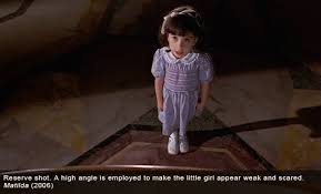 high angle shot - this shot looks down at a character and makes them look more vulnerable and inferior .